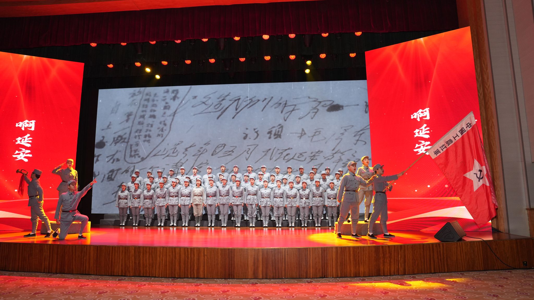 活动分为序幕、信念之路、思想之炬、为民之心、奋进之力、尾声,精心上演《延安颂》《延安窑洞有马列主义》《全心全意为人民服务的楷模》《领航》等8个节目,4位专家分别围绕“为什么说‘中国的希望在延安’”“为什么要把全心全意为人民服务作为党的根本宗旨”“为什么自力更生艰苦奋斗的精神一定不能丢”等主题进行宣讲,实现了文艺表达与思想教育的深度融合,活动现场庄重热烈,洋溢着浓厚的红色氛围。