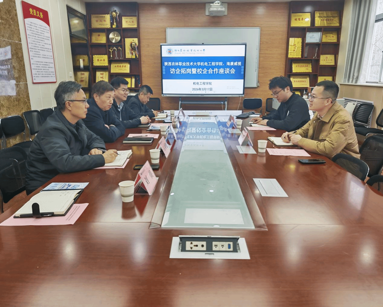 3月17日上午,杭州海康威视科技有限公司招聘经理胡伟一行来校座谈交流。副校长祝战斌出席座谈会,机电工程学院相关负责人等参加。
