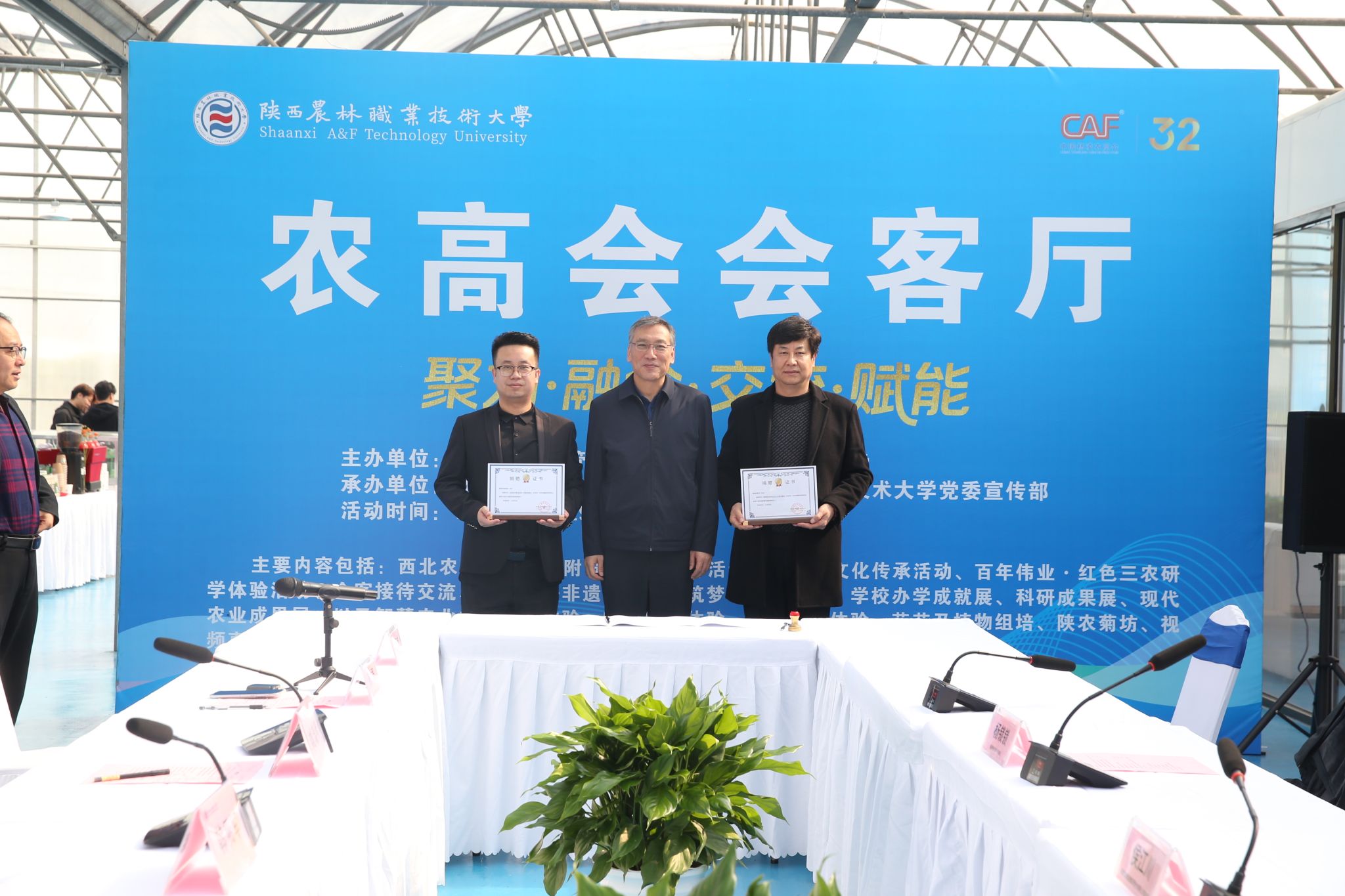 10月26日上午,学校在“农高会会客厅”举行企业捐赠仪式。党委书记韩明军,党委副书记刘瑞明,西北农林科技大学葡萄酒学院党总支书记郭建东,桥畔葡萄酒集团股份有限公司董事长侯江川、总工陈晓,杨凌澜悦铂莱酒店管理有限公司董事长杨锁锁、总经理罗杰,以及旅游与管理学院负责人等共同参加捐赠仪式。