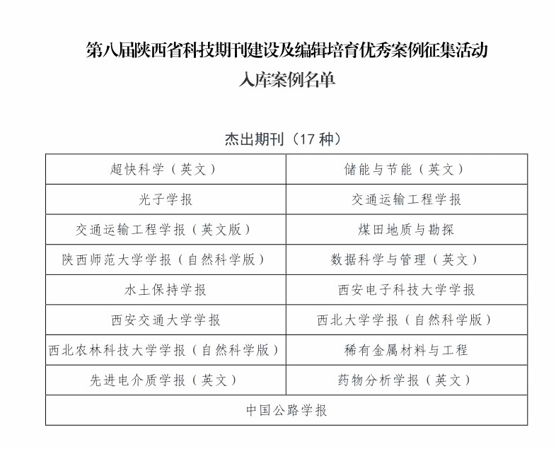 11月10日,第八届陕西省科技期刊建设及编辑培育优秀案例评选结果公示,我校学报编辑部董欣岚老师获“优秀青年编辑”称号。