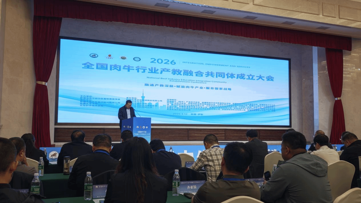 本次大会由新疆维吾尔自治区畜牧兽医学会主办,新疆天莱农牧集团股份有限公司、新疆农业大学、伊犁职业技术学院联合承办,以“融通产教深脉・赋能肉牛产业・服务国家战略”为主题,汇聚全国肉牛产业政行企校研多方代表,共同搭建产教融合协同创新平台,助力肉牛产业高质量发展。会上举行了共同体成立仪式,审议通过了共同体章程,选举产生了第一届理事会及相关组织机构。