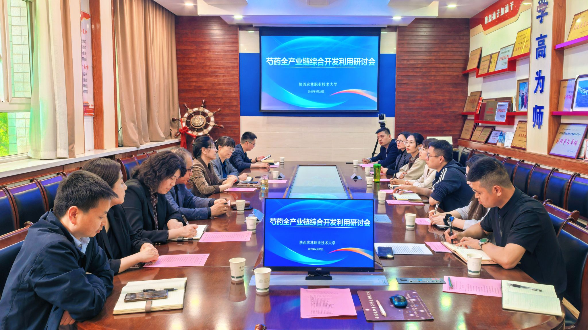4月28日下午,学校召开芍药全产业链综合开发研讨会,副校长胡俊鹏出席会议并讲话。陕西垚森景观有限公司董事长李松、我校生态环境工程学院、生物工程学院、药物与化工学院、机电工程学院、信息工程学院、建筑工程学院、经济与贸易学院、旅游管理学院相关负责人及教师代表参加会议。